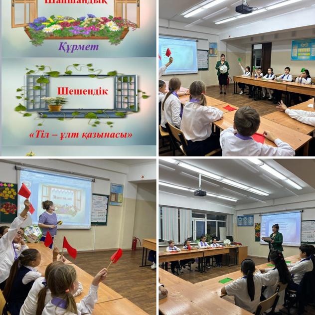 Қазақ тілі қалың ел, ордалы жұрттың тілі ретінде сақталу керек, сақтала тұрып ұлттың ұлттығын да сақтауы тиісті деп бағаланды. А. Байтұрсынұлы «Өз тілімен сөйлескен, өз тілімен жазған жұрттың ұлттығы еш уақытта, адамы құрымай жоғалмайды. Ұлттың сақталуына да, жоғалуына да себеп болатын нәрсенің ең қуаттысы - тіл» деп ұлттық рухтың, болмыстың негізі де, тіл екендігін аңғартты. Осындай пікірлерді Алаш зиялыларының көпшілігі білдірді.#112ЖББ мектепте 5-сыныптар арасында қазақ тілі пән мұғалімдері Полатова У.Н мен Алчимбаева Г.Б “Тіл-ұлт қазынасы”атты интеллектуалды танымды сайыс ұйымдастырды.