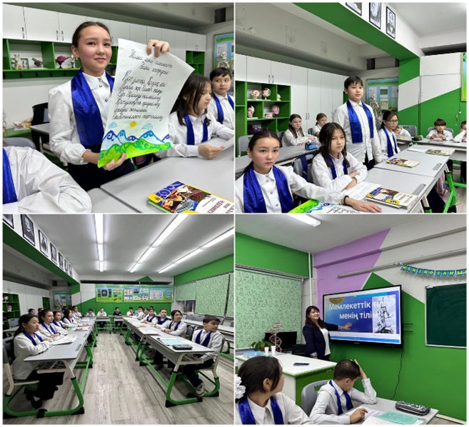 Алматы қаласы Білім басқармасының Қалалық білім берудегі жаңа технологиялардың ғылыми-әдістемелік орталығының Қазақстан Республикасының 1997 жылгы 1 шілдедегі «Тіл туралы» Заңын басшылыққа ала отырып, Жетісу ауданы №112ЖББМ «Тіл – ұлттың жаны» атты тәрбие сағаты ұйымдастырылды. Мақсаты: Оқушыларды туған халқының тілін қастерлейтін саналы да парасатты азамат етіп тәрбиелеу.