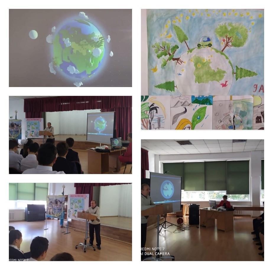 Жетісу ауданы №112 ЖББМ Эко сағаты қазақ, орыс, ағылшын тілдерінде өткізілді.5-9 сыныптар арасында «Жер ана- ортақ үйіміз» атты сурет байқауы ұйымдастырылды. Эко сағаттың мақсаты -табиғатты қорғау, экологиялық тәрбие негіздерін қалыптастыру.