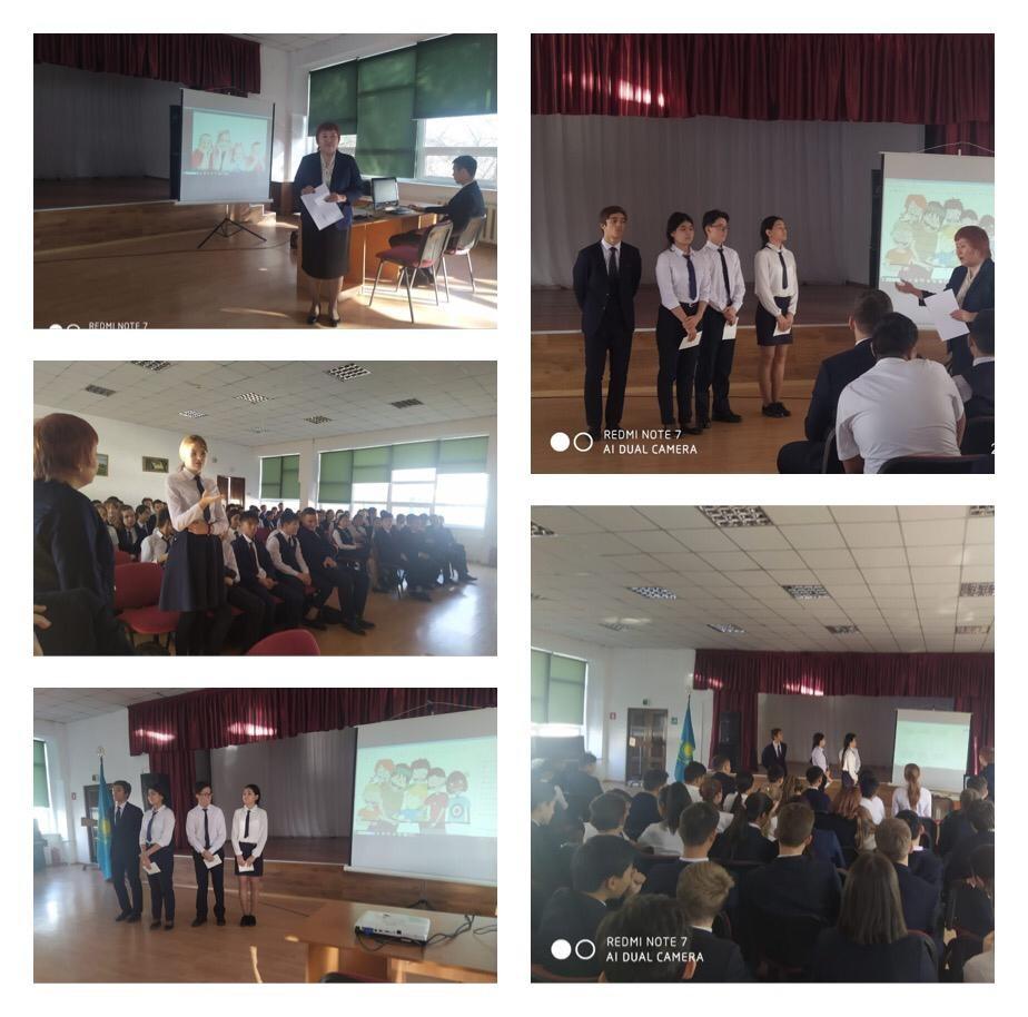 2019жыл-Қазақстан Республикасының бала құқықтары туралы Конвенцияны қабылдауының 30 жылдығы мен ратификациялауының 25жылдығын мерекелеуге байланысты №112 жалпы білім беретін мектепте 5-9 сыныптар арасында 2019 жылы 13 қараша күні «Бүгінгі шақ және болашақ: әр бала үшін қорғаныс қамтамасыз етілген балалық шақ» атты Дүниежүзілік сабақ ұйымдастырылды. Мақсаты: «бала құқығы», «адам құқығы», «құқық» теминдерінің, балалардың құқықтары туралы Конвенция ережесінің қабылдаған және оны түсіну үшін жағдайлар жасау. Балалардың құқықтары бойынша Конвенция туралы балалардың ақпарат алуын арттыру. Заңды тұрғыдан өзін қорғай алатын дағдыларды дамытуға көмектесу. Тәрбие сабағы барысында «Қол соғыңыздар, егерде ...» деген әдіспен басталды.Кімді адам құқығы, оның ішінде баланың құқықтары ойландырады? Кім адам құқықтарын және бала құқықтарын сақтап және құрметтей отырып жұмыс істеуге дайын? Конвенция ұғымын қалай түсінетіндігі туралы. Бала құықтары туралы Конвенция – бұл шарт, онда әлемдегі барлық балаларға қатысты, олардың құқықтары туралы айтылады.
