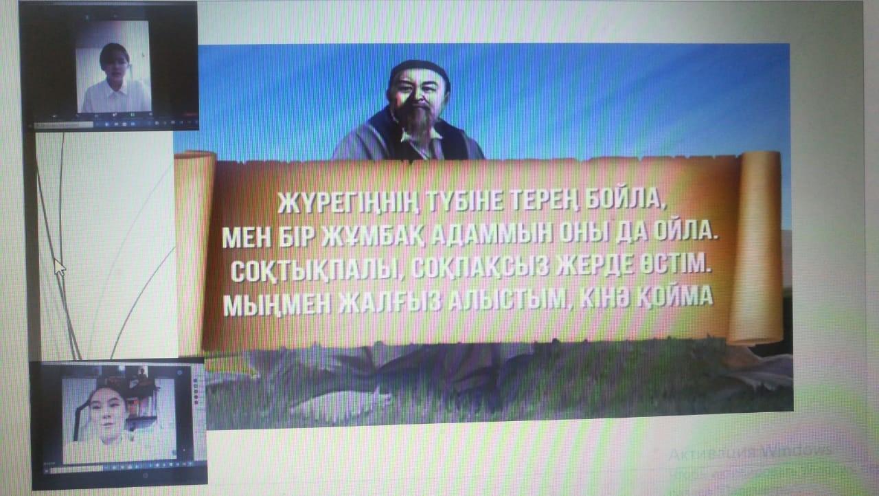 Сабақтың тақырыбы: «Абай мұрасы – ұлтымыздың рухани мұрасы» дөңгелек үстел қашықтықтан өткізілді.