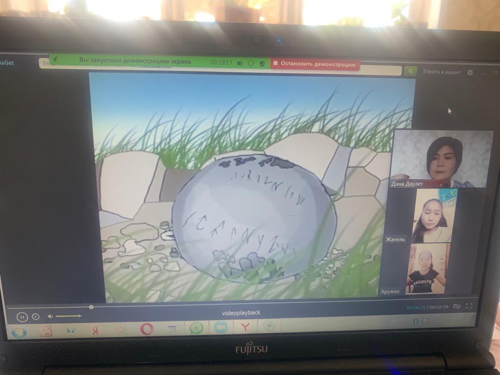 Оқушылардың өз ана тіліне деген құрмет сезімін арттыру, қазақ тілінің мәртебесін көтеру, ана тіліміздің тұғырының мықты болуына негіз қалаған бабаларымыздың өсиетін ұран етум мақсатында №112 жалпы білім беретін мектептің 6-сынып оқушыларымен Абдразакова Д.Д. «Алып Ер Тұңға» жыры тақырыбында қашықтықтан онлайн сабағын өткізді.