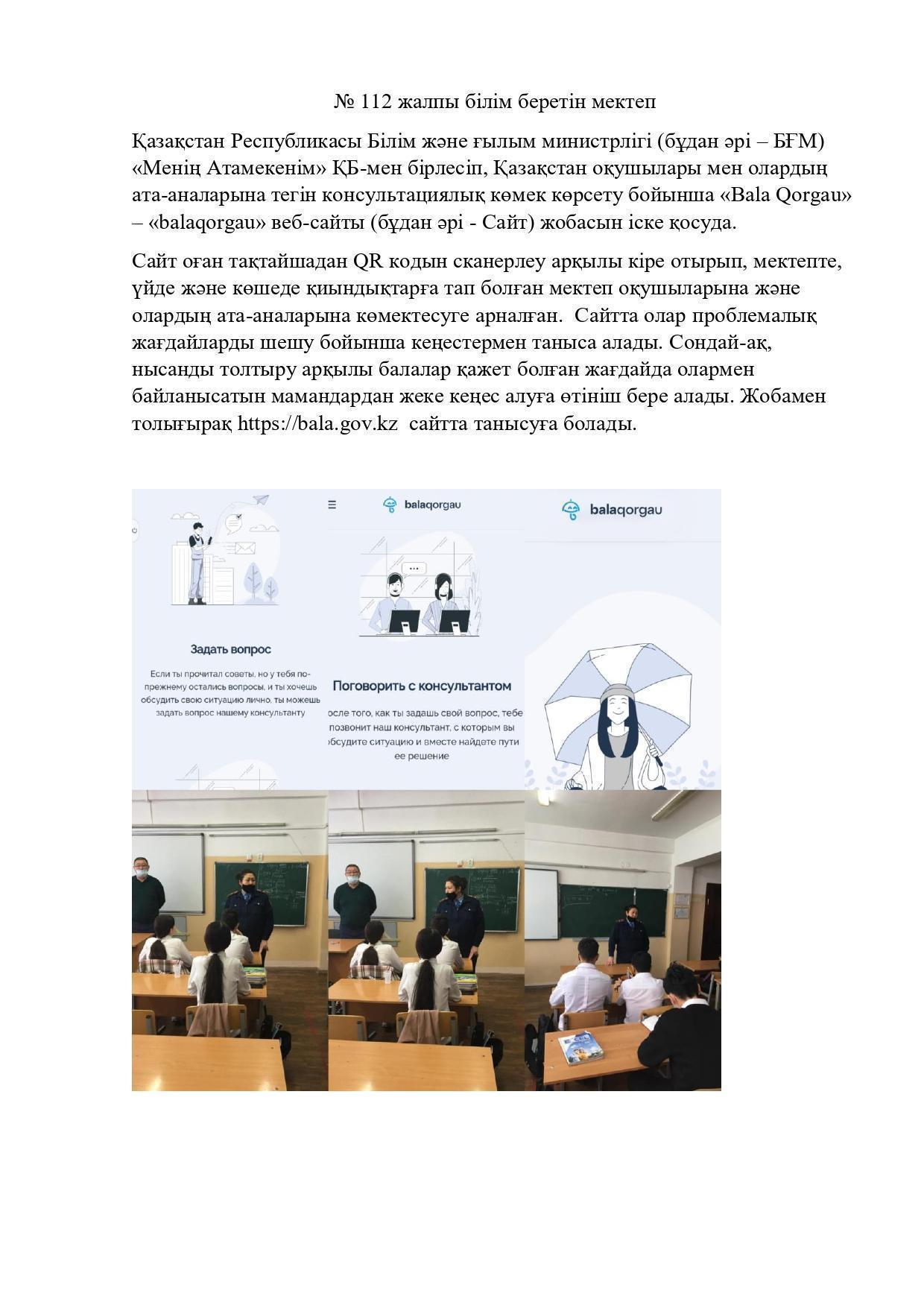 КГУ «Общеобразовательная школа №112» Управления образования города Алматы