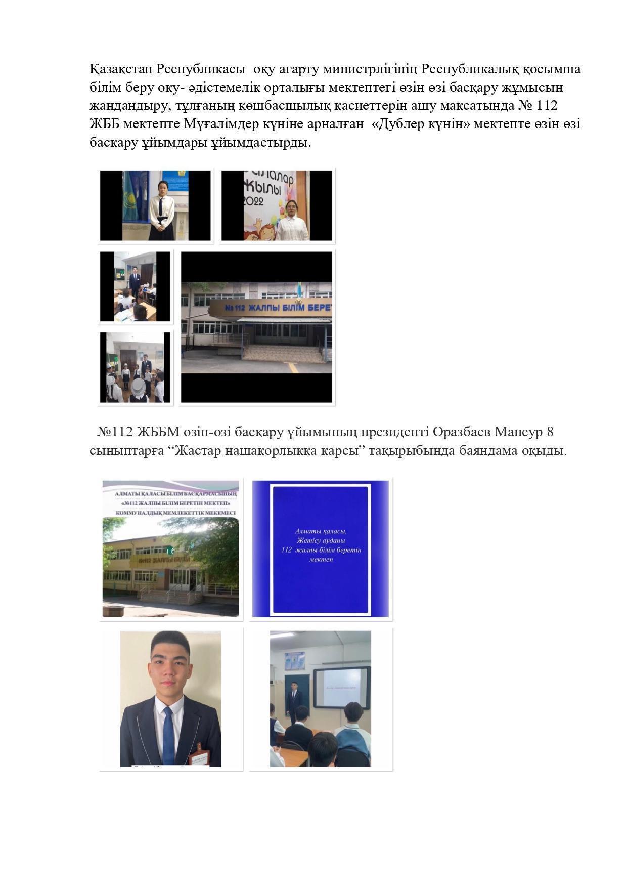 №112жалпы білім беретін мектептің 18.01-23.01 аралығындағы өткізілген іс-шаралардың есебі
