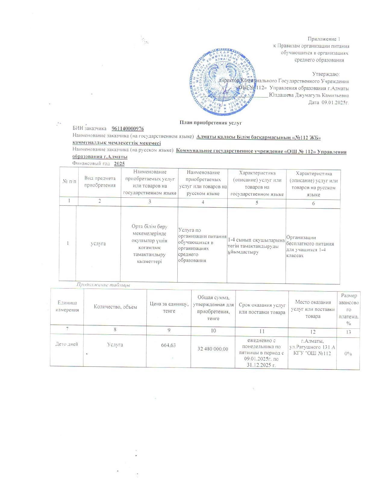 » План приобретения услуг