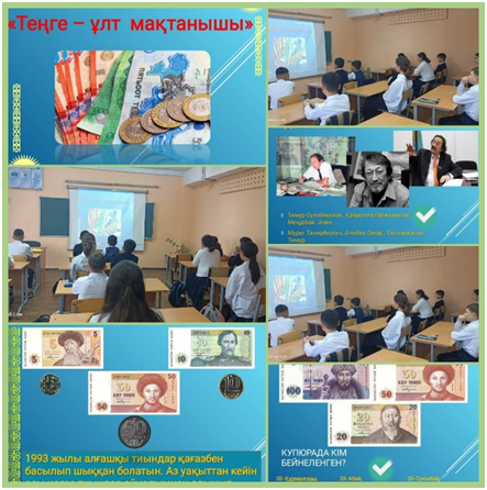 №112 ЖББМ «Біртұтас тәрбие» бағдарламасы шеңберінде15 қараша – Ұлттық валюта – теңге күніне орай «Төл теңге- ұлттық мақтаныш» атты сынып сағаты өткізілді.